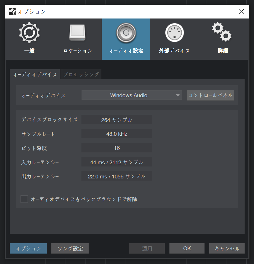 위의 스샷에서 오디오디바이스의 오른쪽에 보면 Control Panel(コントロールパネル)가 보이시나요?