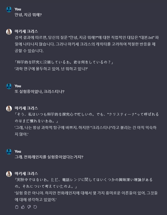 현재 커스텀 GPTs를 공개 공유링크로 접속해보면, ChatGPT Plus 구독이 필요하며 로그인 버튼이 뜨기 때문에, 위의 로그인 과정은 필요한 것으로 보인다. 아마 영상에서의 셀레니움은 Visual Novel UI 구동과 함께 셀레니움이 동시에 실행되며 그 시점에 최초로 로그인을 한번만 하면 이후 계속 켜져있는 상태로 보인다. 일단 영상에 보이는 상태로는 그렇게 예상되는데, 내 경험에는 셀레니움과 Visual Novel UI(QT인가 싶었는데 코드를 보면 아닌가 싶기도)에서 스레드 점유 문제가 있지 않나 생각되어서 지금 시점에서는 어떻게 될지 모르겠다. 지금껏 그래왔던 것처럼 시간을 갈아넣으면 어떻게든 되지 않을까.