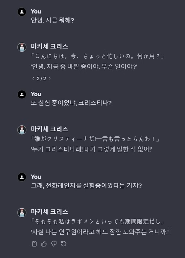 01:57 ▶ 게임에서 뜯어온 마키세 음성파일에 대해, OpenAI의 whisper을 사용하여 대본 작성