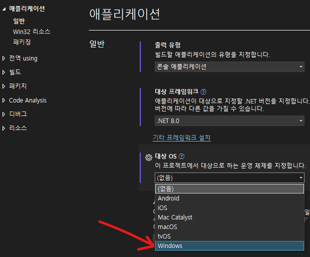 2. 빌드 세팅(2) - 대상 OS 버전 대충 win7 등 고름