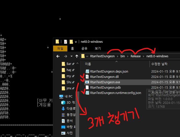 4. exe 파일 기본 생성 위치, 다른 곳으로 가져갈 때 파일 세개만 챙기면 잘 실행되는 것으로 보임