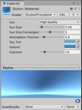 Window - Rendering - lighting의 Environment 탭에서 Skybox Material에 위에서 만든 Skybox를 사용