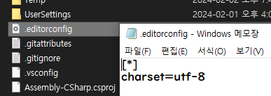 유니티 강의를 들으며 기능 구현을 할 때마다 커밋을 하며 진행중인데, 잠깐 지나치며 File Changes 내용을 보니 아래와 같이 인코딩 문제가 있었다.