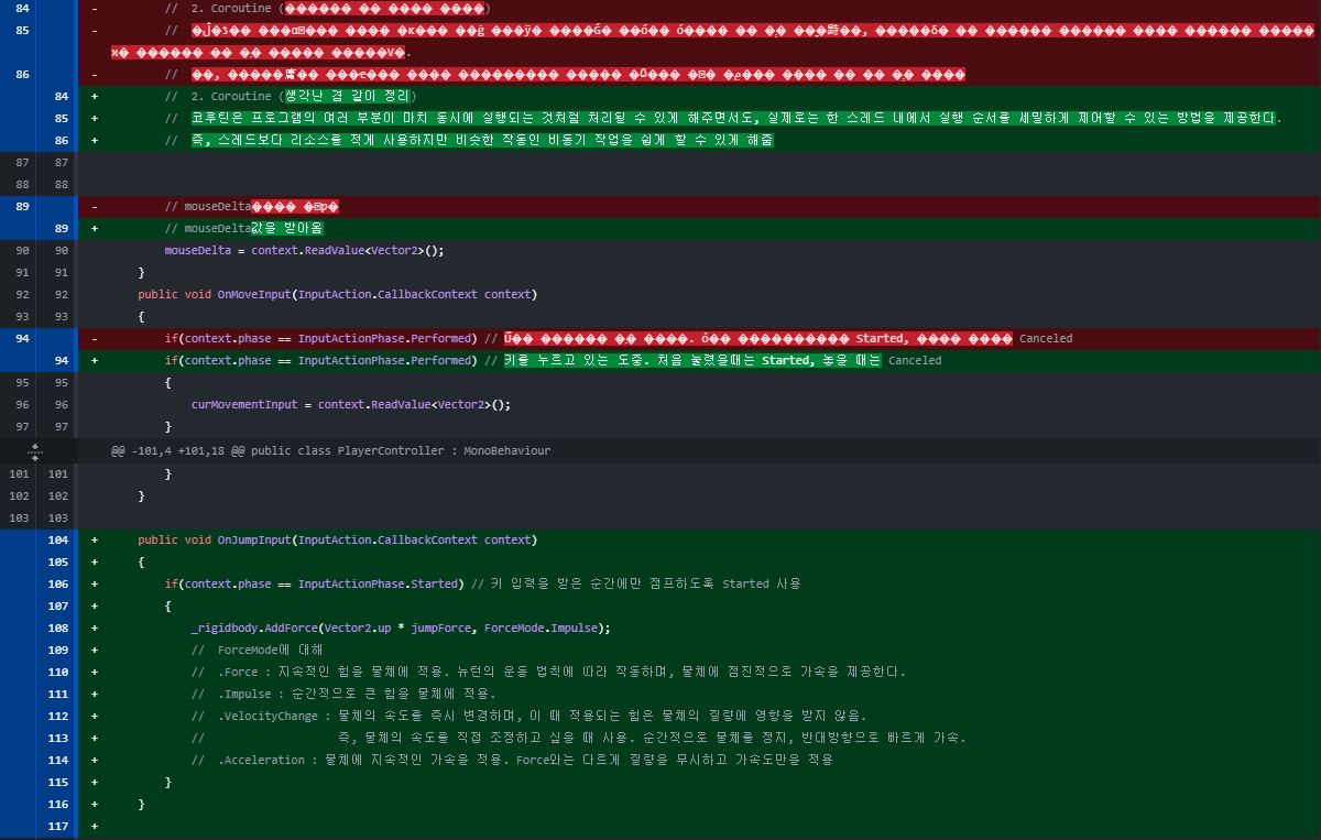 기능적으로 바뀐 부분 이외에 한글 주석을 달았던 부분이 모두 바뀌기 때문에 커밋 내용이 지저분해진다.