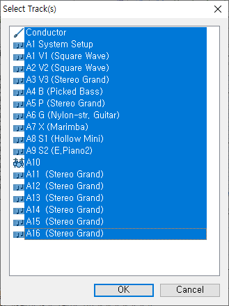 여러 트랙을 선택하기 위해서는 아무래도 Shift키나 Ctrl 키를 사용할 수 밖에 없어 보인다. 아무튼 이렇게 보여줄 트랙을 모두 고른 후 OK를 눌러본다.