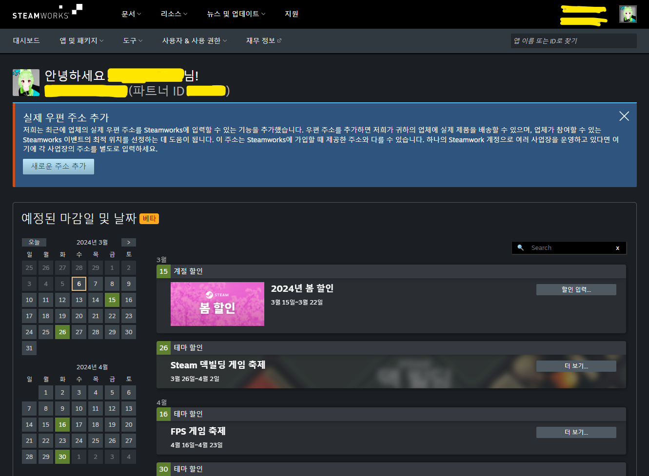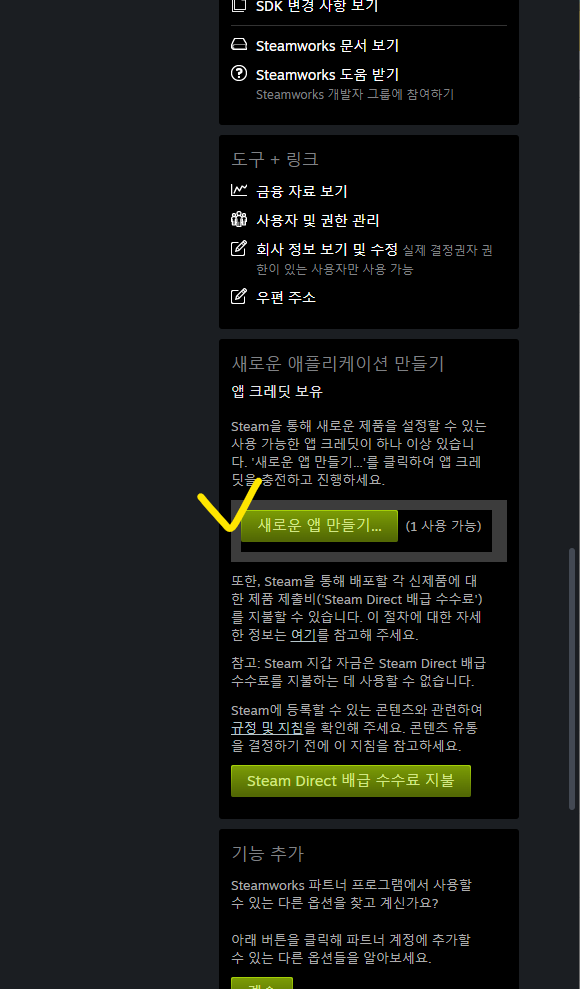 이후 사용자 대시보드를 확인하거나 할 수 있다. 나는 당장 여기서 게임 출시를 할 수 있는 직접적인 무언가를 찾지 못했기 때문에, 스팀 출시 가이드 -2- 이후를 이제 참고하며 진행해야겠다.