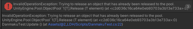 Pool에 이미 반환한 오브젝트를 또 반환하려고 하면 에러를 표시한다.