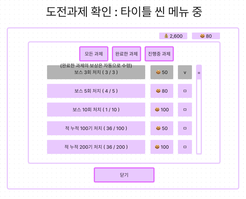 도전과제와 탄막 매니저의 모습에 대한 구상은 아래와 같다.