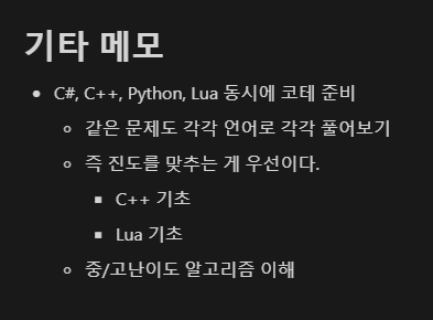 Python 주력에 유니티는 C#이지만 대기업 준비 하려면 C++은 꼭 준비해야하지 않을까 싶다.