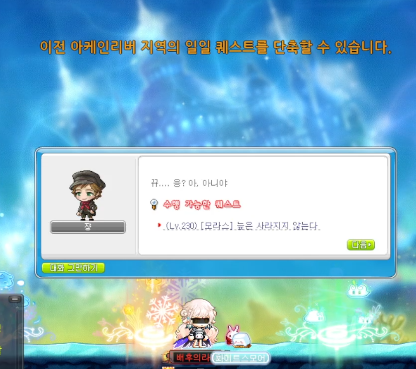 "이전 아케인리버 지역의 일일 퀘스트를 단축할 수 있습니다."라는 안내메시지와 다르게, 실제로는 단축이 되지 않습니다.
