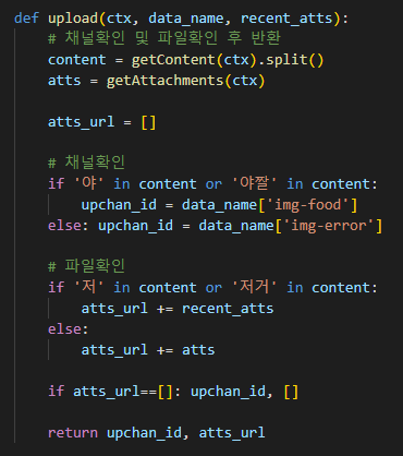 !업로드(!업) 과 함께 이미지를 첨부하거나 저거(저)라는 키워드를 함께 붙여 최근 이미지를 봇이 읽도록 하고있는데