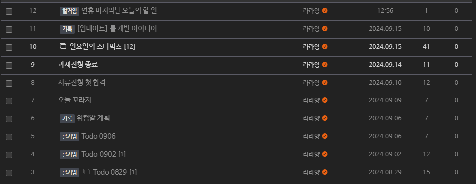 개발자 뻘글 커뮤니티(갤러리) - 하루계획, 혼잣말, 기록, 뻘글 쓰는 채널. 아무나 다른 챈에 싸기 애매한 글 싸는 곳.