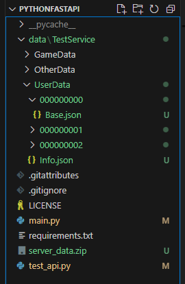 새로운 서비스(앱, 게임 등) 생성 시, GameData, UserData, OtherData 폴더가 함께 생성되도록 하고, UserData 폴더에는 Info.json 파일을 생성하여 신규 유저의 UID 부여에 참고하도록 한다.