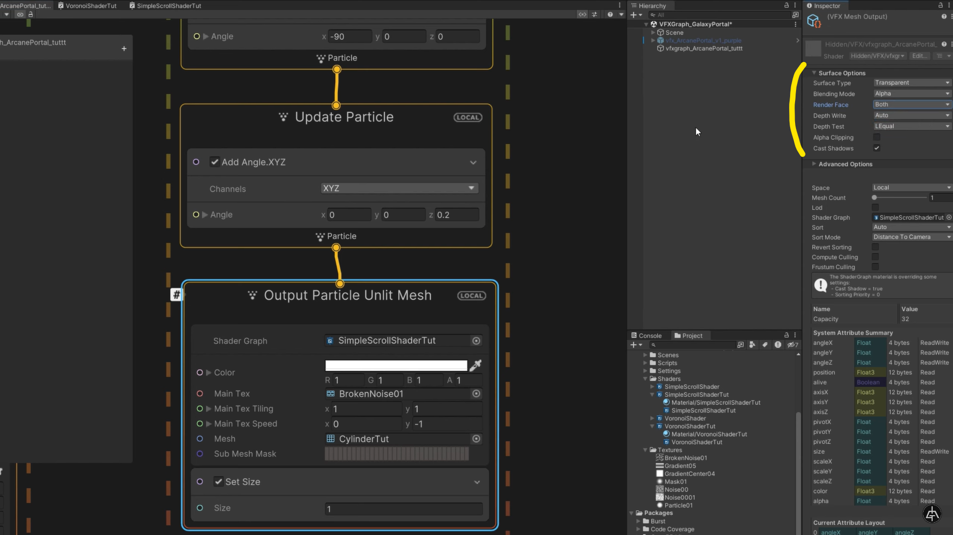 VFX 튜토리얼을 따라하고 있는데, 인스펙터에서 Surface Options 가 보이지 않는다.