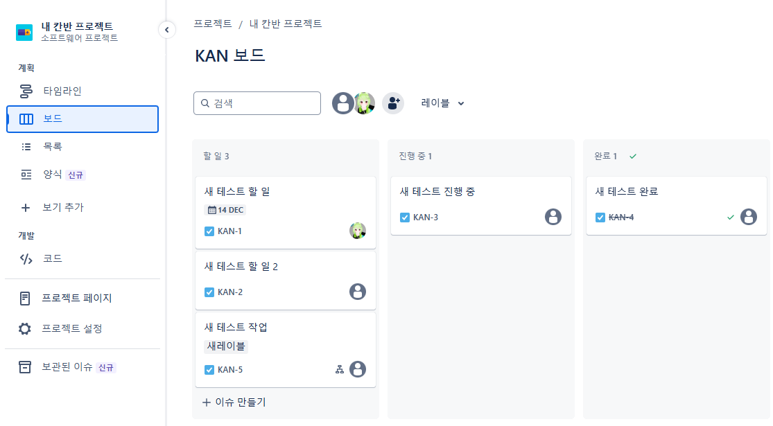 2. 이슈 목록에서 보면 타임라인에서 만든 이슈는 '에픽'이고, 유형 보드에서 만든 이슈는 '작업'유형이 붙어있는데 why...