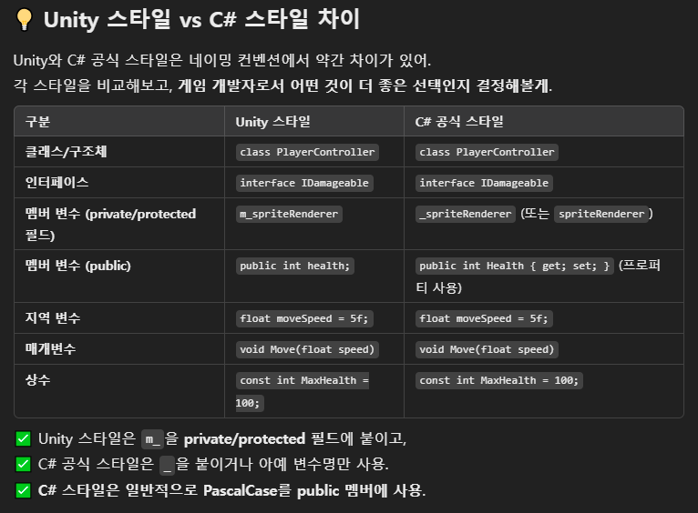 일단 GPT 자문을 통해, Unity 스타일과 C# 스타일에도 살짝 차이가 있다고 한다. 일단 차이를 확인 해 보면,