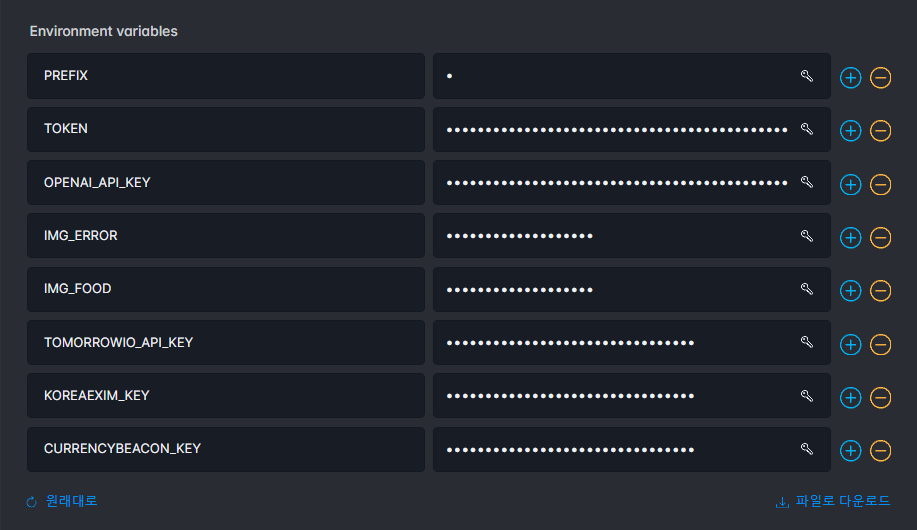 그리고 배포 시에는 플랫폼에서 해당 환경변수들을 직접 사용자가 입력하여 사용하는 등의 지원이 잘 되어있다.