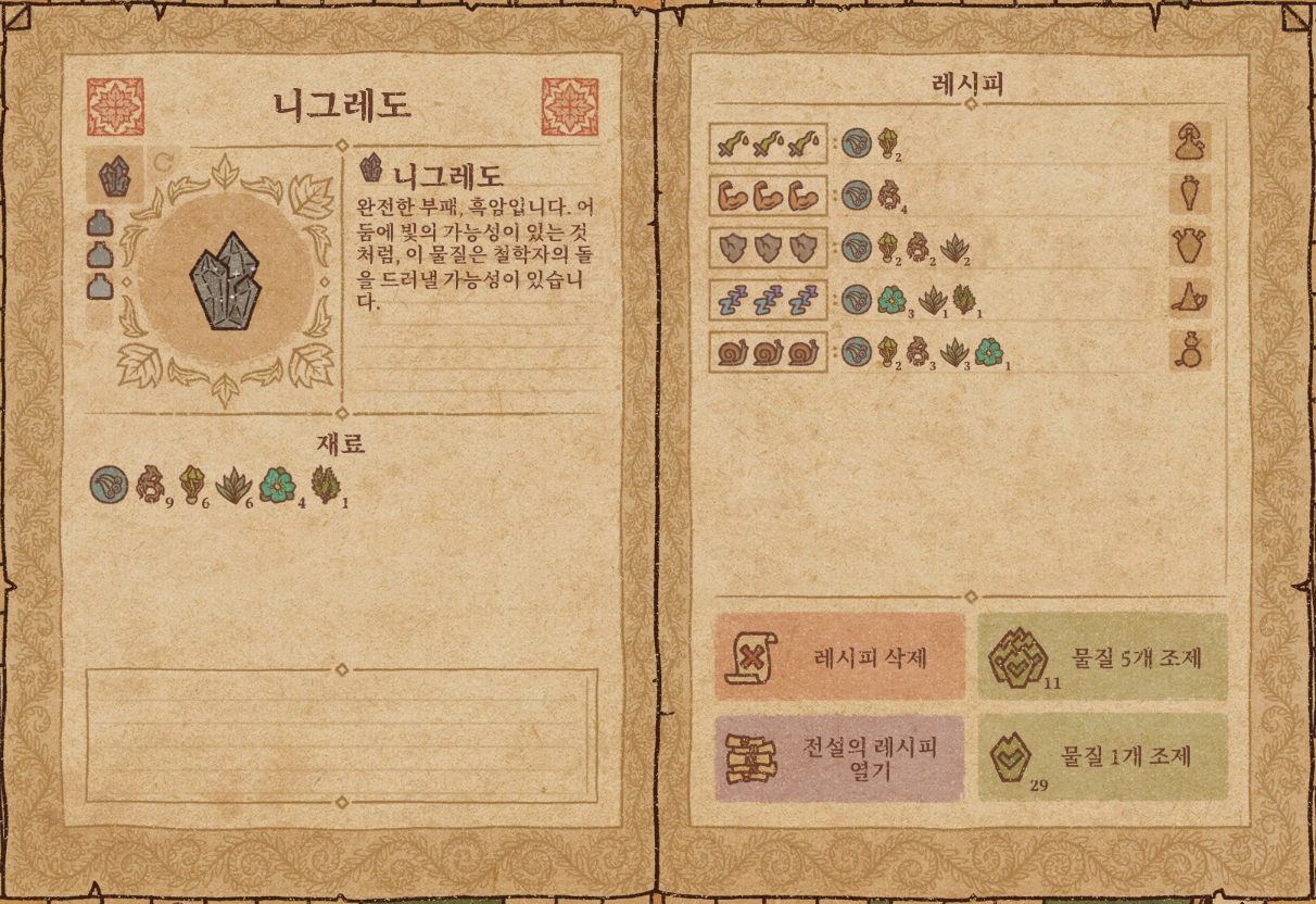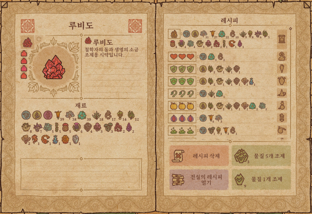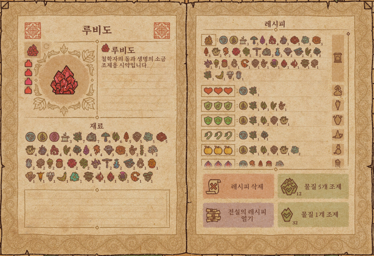 마지막 레시피인 철학자의 소금을 완성하고, 처음부터 다시 레시피 개선에 착수